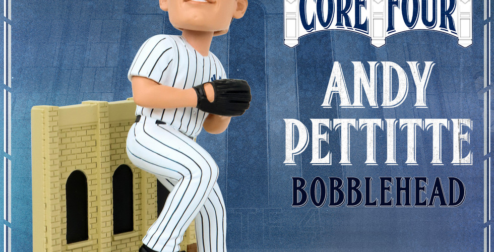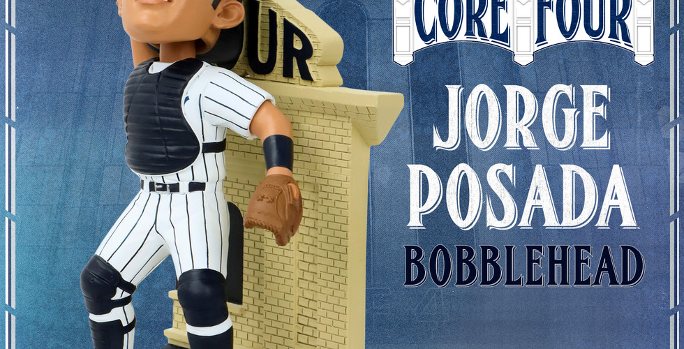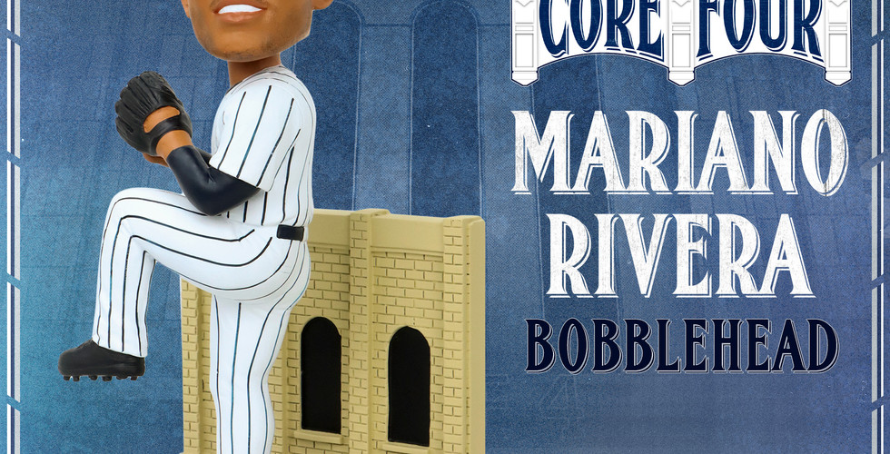 Each bobblehead portrays Pettitte, Jeter, Posada, and Rivera all in gameday uniforms and action poses, ready to make the play of the game.
